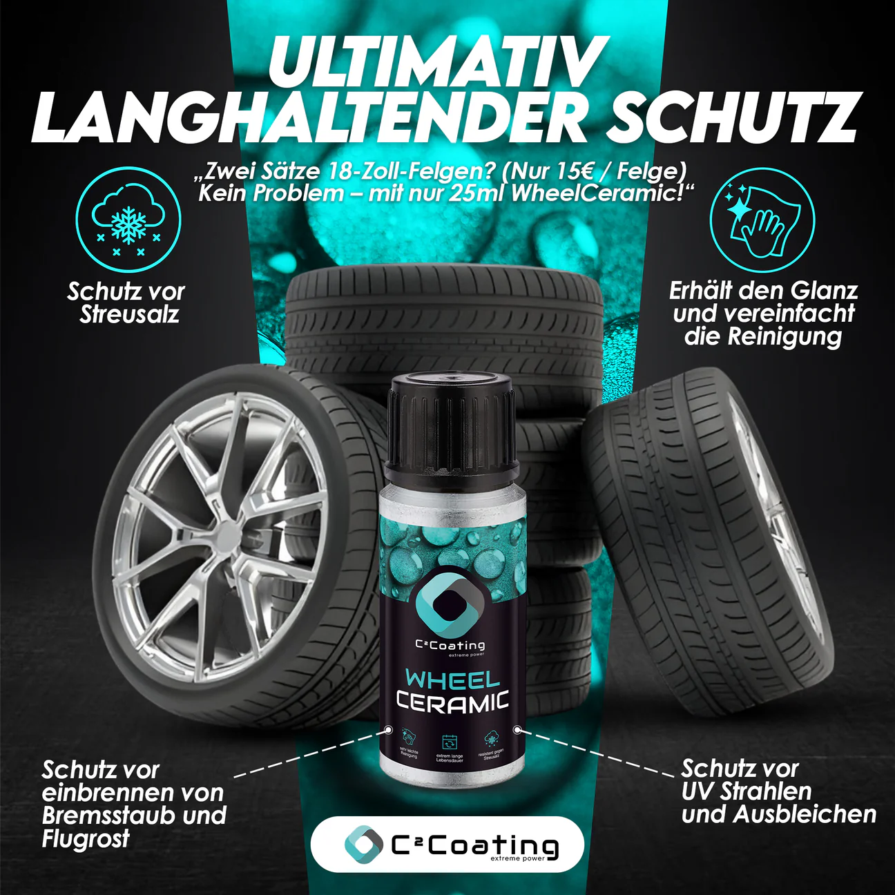 ✅ 25 ml reichen für ca. 8 Felgen – ideal für mehrere Fahrzeuge oder eine zusätzliche Schutzschicht (nur 15 € pro Felge)
